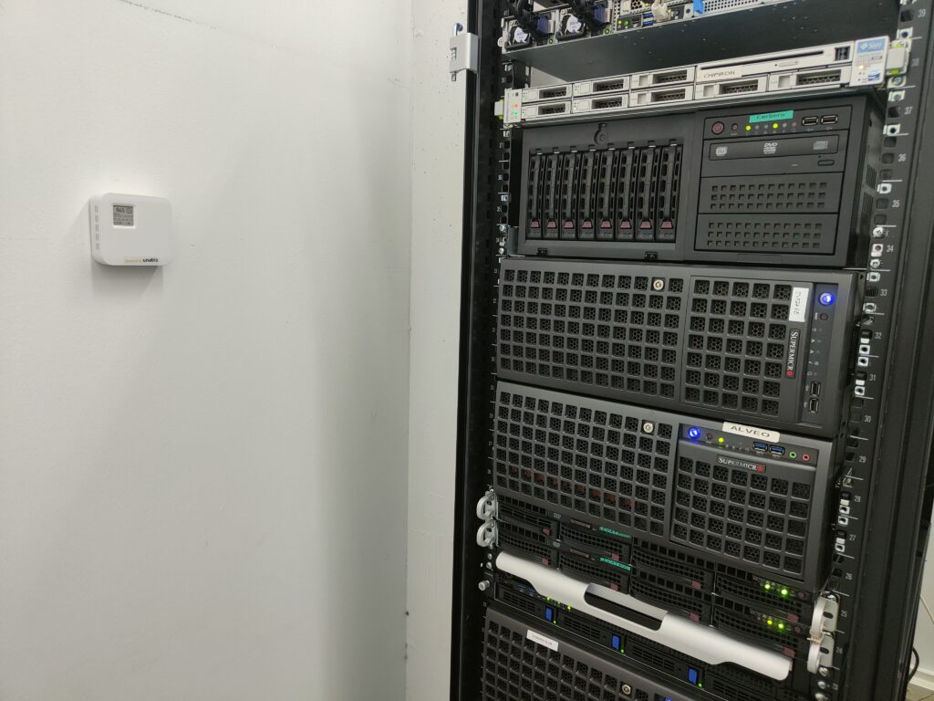 Los sensores instalados permiten monitorizar variables clave como el nivel de CO₂, la temperatura y la humedad. En total, se han desplegado tres dispositivos IoT autónomos e inalámbricos de la empresa Connected Inventions, integrados en la plataforma de UnaBiz, que recoge y visualiza los datos en tiempo real. Estos sensores se ubicaron estratégicamente en un aula del Máster en Internet de las Cosas, un laboratorio de investigación y una sala de servidores.